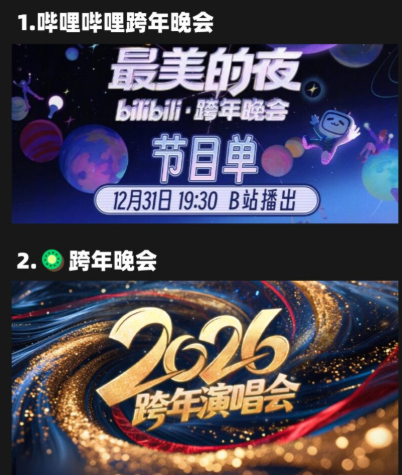 各大平台集结顶流艺人、跨界嘉宾与热门 IP,打造专属跨年狂欢夜,看点十足!