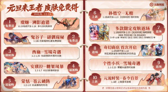 免费直领:全新皮肤【虞姬 - 溯影追猎】参与限时活动即可解锁;【鬼谷子 - 谜偶窥秘】登陆月度福利礼册免费得,零门槛薅羊毛!