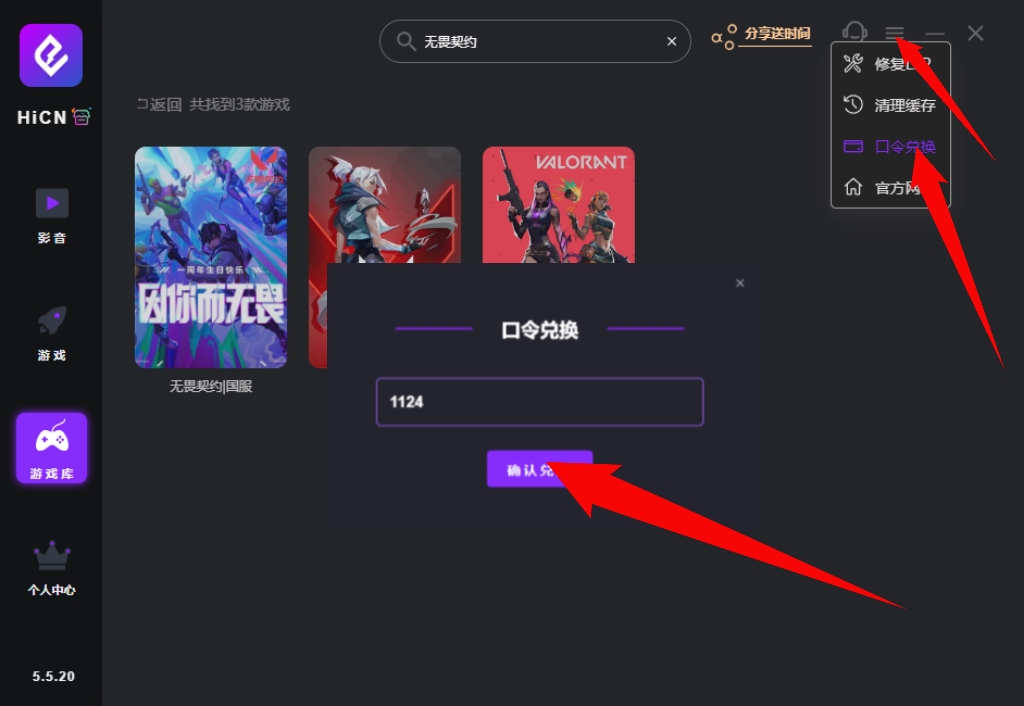 第二步:领取专属VIP 🎁 注册并登录账号后,找到【兑换码/口令】入口,输入专属福利口令: 👉 【1124】 确认后,免费VIP加速时长即刻到账!