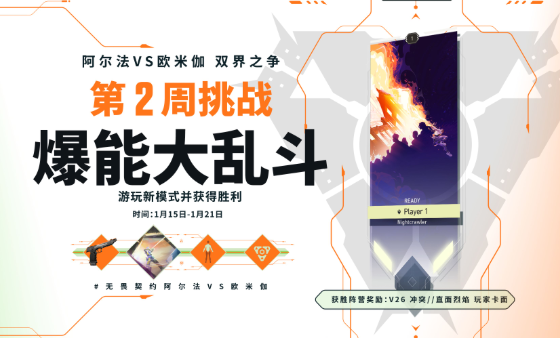 家人们!瓦批们集合啦!1月15日,无畏契约国服全新限时模式 【爆能大乱斗】 终于火热上线!🔥 想要赢取『V26冲突//直面烈焰』专属卡面吗?想要体验技能无限丢、大招随便放的快感吗?这个模式简直是为解压而生!