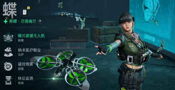 1. 大招·仿生蝴蝶群 🦋 这是蝶的灵魂技能!她能在55米范围内脱手释放无人机群,自动为倒地队友拉满复活条,且后续可远程激活救援。释放期间还能免疫一次爆炸伤害,彻底解决了传统救援容易被集火“一尸两命”的痛点,是团队续航的绝对保障。