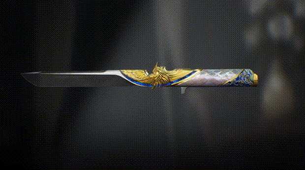 外观炸裂:刀身是冷冽的银白配上鎏金羽翼护手,刀柄则是紫白菱格纹。最绝的是战斗时会浮现暗红特效,象征着哈德森“一体两面”的人设,拿在手里就是尊贵!
