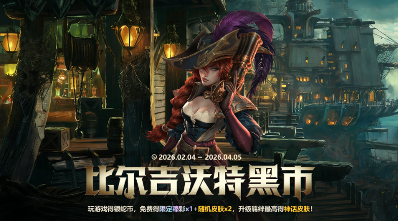 黑市淘宝:参与“比尔吉沃特黑市”活动,玩游戏攒银蛇币,可免费兑换两款皮肤(或小小英雄)及一款限定臻彩【玉剑传说 舞龙卫 珠光】。