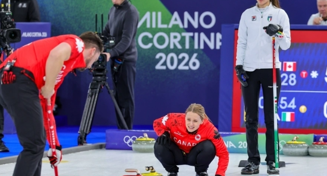 作为本届冬奥会的东道主及卫冕冠军,意大利组合莫萨纳/康斯坦丁尼迎来了他们的首秀。在上午的比赛中,面对韩国组合金善英/郑永锡,意大利队在主场观众排山倒海的助威声中气势如虹。比赛半程他们就确立了6:1的巨大优势,最终以8:4轻松取得“开门红”。女选手康斯坦丁尼赛后激动地表示,在家门口参赛并听到同胞的欢呼,这种体验无比美妙。