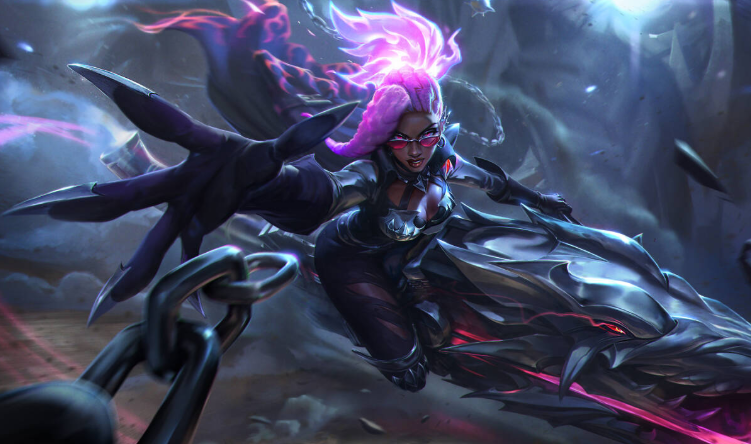 这次的皮肤彻底颠覆了赛娜以往那种略带忧郁的光明哨兵形象,将她重塑为一位极具攻击性的无情猎手。她手中的武器变成了一把散发着红光的狼头巨炮,金属边缘闪烁着危险的光芒。一头粉色火焰般的长发搭配冷酷坚毅的眼神,再加上一身流线型的暗色战甲与飘逸披风,战火气息瞬间拉满!