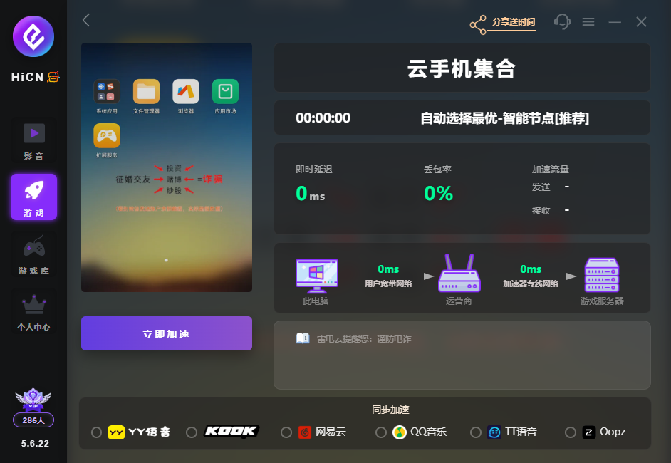 更直接的办法,是用回国加速器对海外到国内的传输路线做专项优化。我自己的习惯是:先开启 HiCN回国加速器,让它把线路状态调整到更稳定的路径,再打开趣点云游戏进入游戏。