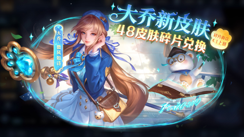 今天《王者荣耀》碎片商店上新啦,大乔的新皮肤“微风如诗”正式加入兑换,48皮肤碎片就能拿下,用点券买也只要488。这款勇者品质的皮肤,画风清新,魔法学院风拉满,给大伙儿简单介绍一下。