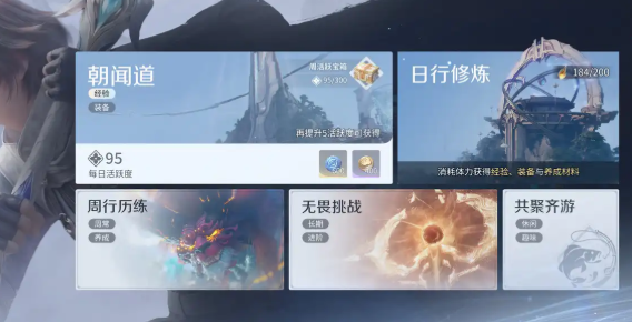 和主线一样,日活任务“朝闻道”也是新手获取经验的重要途径。每天上线简单完成几个任务就能获得3000经验。周活跃度达标后,下周还能领取高级装备宝箱。