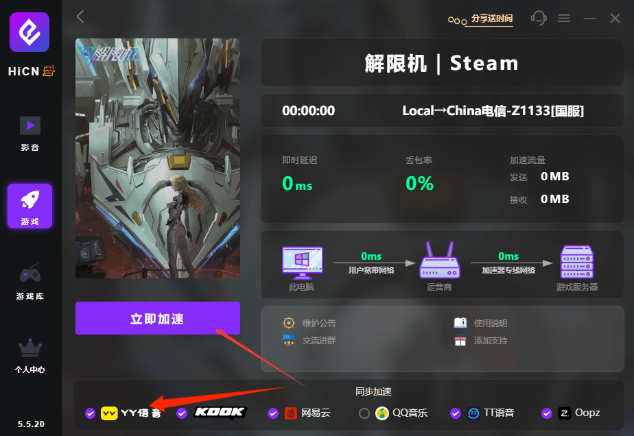 通过使用HiCN海外回国加速,智能路由优化网络环境,切换至国内服务器节点,解决因地区限制导致的YY语音功能异常,海外用户也可以正常使用YY语音,完美解决海外yy语音问题助大家快乐开黑。