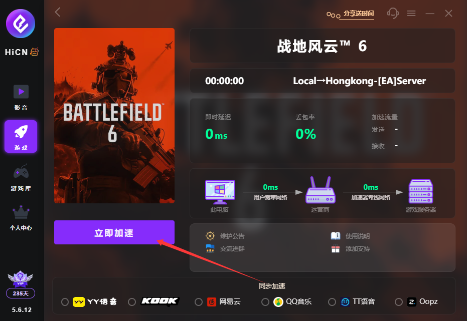 当玩家与游戏服务器物理距离较远时,极易出现网络波动从而出现战地6无法启动,无法运行的情况出现。HiCN 回国加速采用电竞级专线加速,可智能选择最优加速节点,保持与游戏服务器的稳定连接。解决因网络问题导致的游戏启动失败,无法运行等问题。在口令兑换处输入 :HiCN666,可领取VIP加速时长。