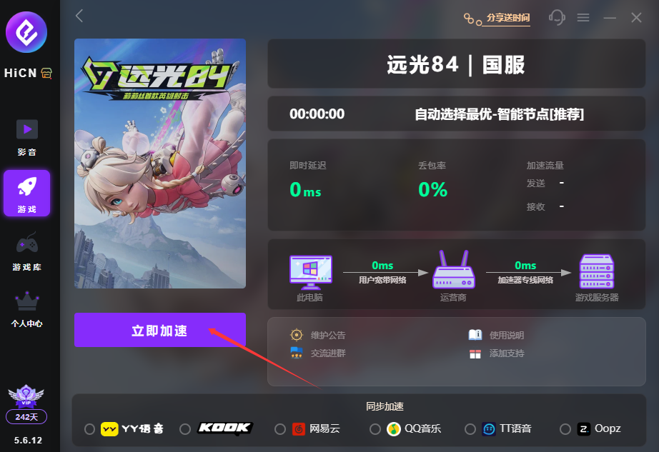 跨国网络的物理距离太远,信号传输就得绕一大圈,这途中稍微有点风吹草动,网络就不稳了,特别容易断连。而且,游戏服务器有时候因为玩家人数太多,忙不过来,也会导致断连。遇到这情况时,大伙可以使用 HiCN 海外回国加速器,专门优化海外到国内的网络线路。HiCN能有效改善网络传输质量,降低延迟和丢包率,让海外玩家玩国服的时候就跟在国内一样顺畅,大大减少断连的情况。在口令兑换界面输入:HiCN666,还能领取 VIP 加速时长