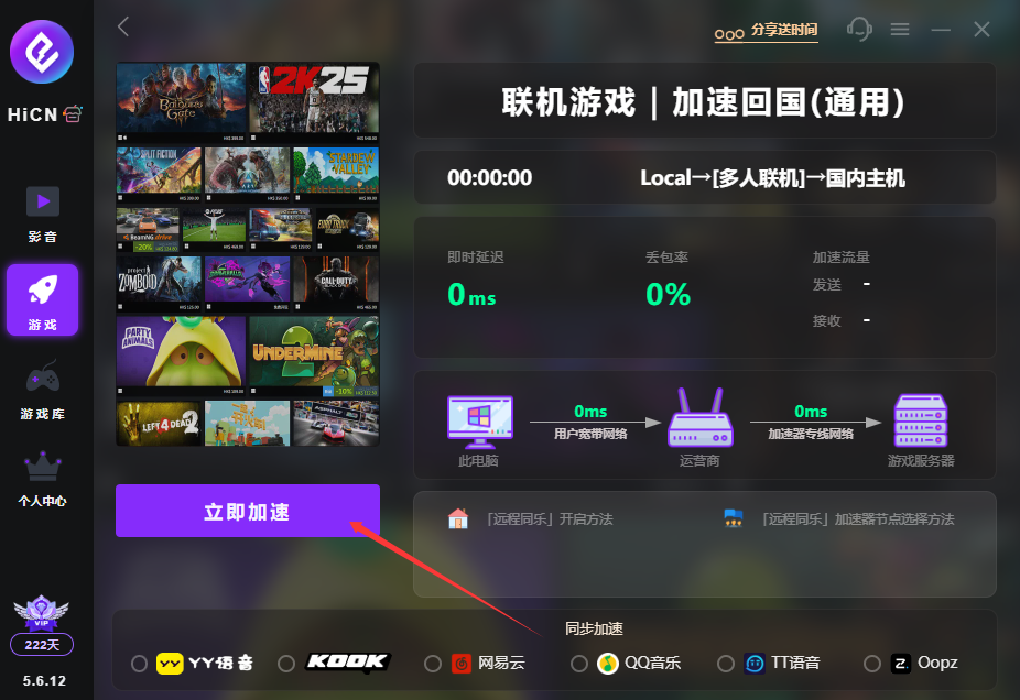 海外玩家只需在 HiCN 官网或应用商店下载对应的客户端,完成注册登录流程。随后,在搜索栏中精准找到联机游戏,点击加速按钮,即可轻松享受优化后的高速网络环境。现在使用口令:HiCN666,还能领取 VIP 加速时长