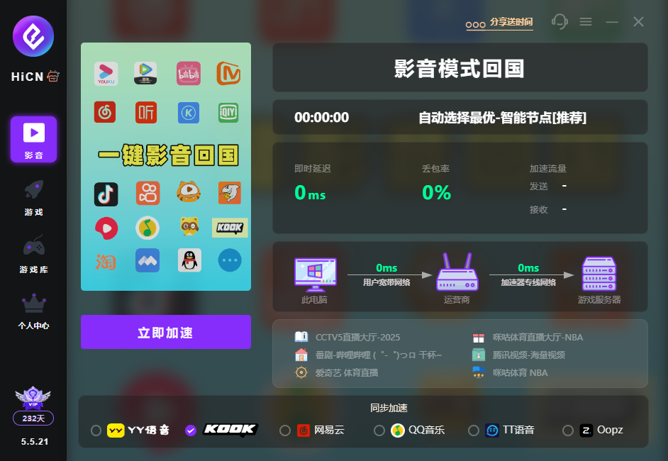 玩累了游戏,HiCN 还能加速国内影音平台,海外也能流畅观看剧集、听华语音乐,休息时放松身心,为下一场冒险蓄力。