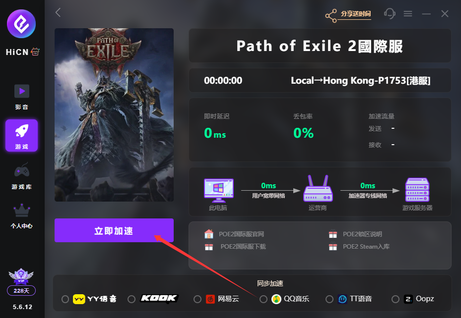 在使用 HiCN 海外回国加速器时,输入专属口令 HiCN666,可领取 VIP 加速时长,帮助海外玩家进一步提升网络连接质量,更顺畅地体验《流放之路:降临》。