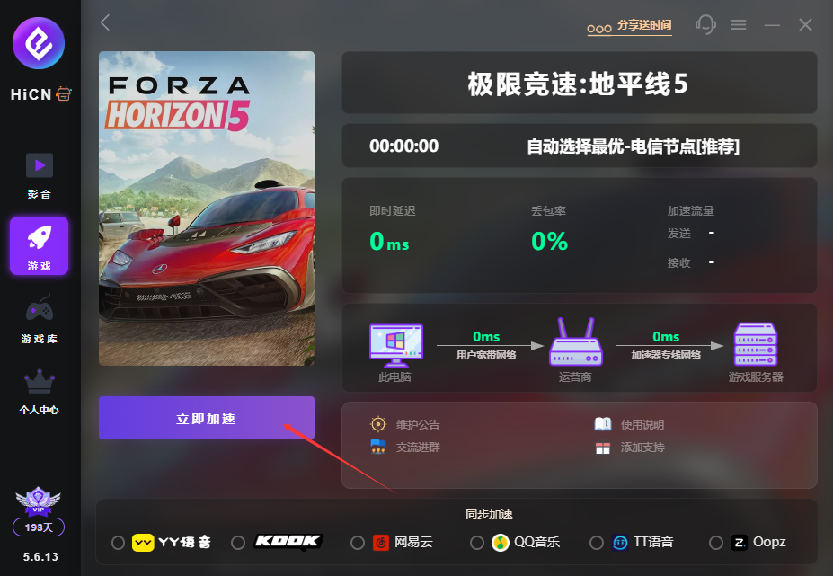 HiCN 操作简便,玩家下载客户端后无需复杂设置,一键即可开启加速。输入专属口令HiCN666,还能领取额外 VIP 加速时长,轻松享受高品质加速服务。