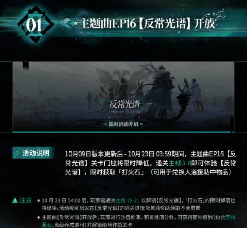 核心内容:主题曲 EP16《反常光谱》已开放,同步解锁全新音轨,带来沉浸式剧情体验;