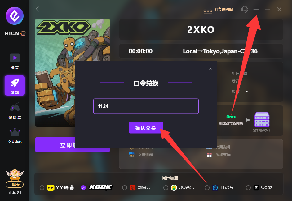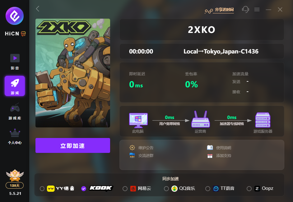 加速:搜 “2XKO” 选择对应服务器(国际服 / 国服),一键启动加速,智能匹配专线,降低延迟、破除地区限制。