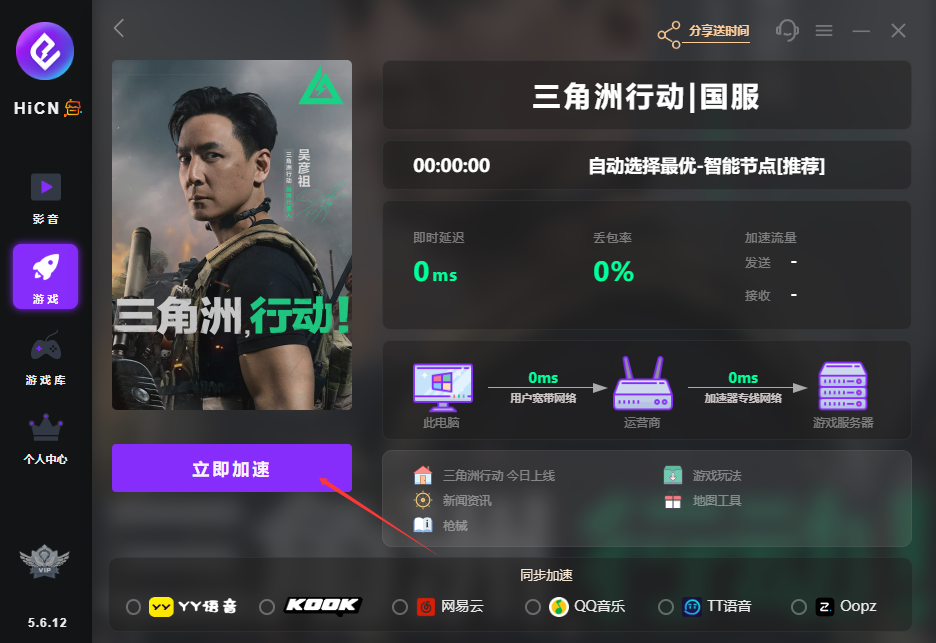 3,在游戏库中找到 “《三角洲行动》国服” 点击一键加速即可