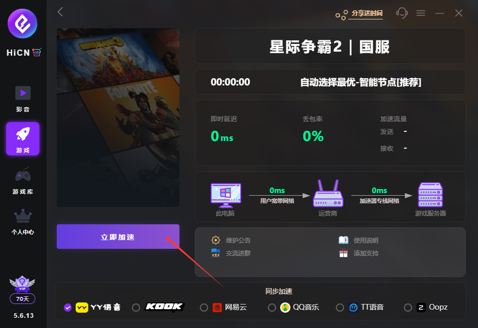 2,HiCN 海外回国加速器十分贴心。玩家下载安装适配的客户端,无需复杂设置,注册登录后在游戏库找到 “星际争霸 2 - 国服”,点击 “一键加速”,就能完成线路优化,就算是不熟悉网 络设置的新手玩家,也能轻松上手。