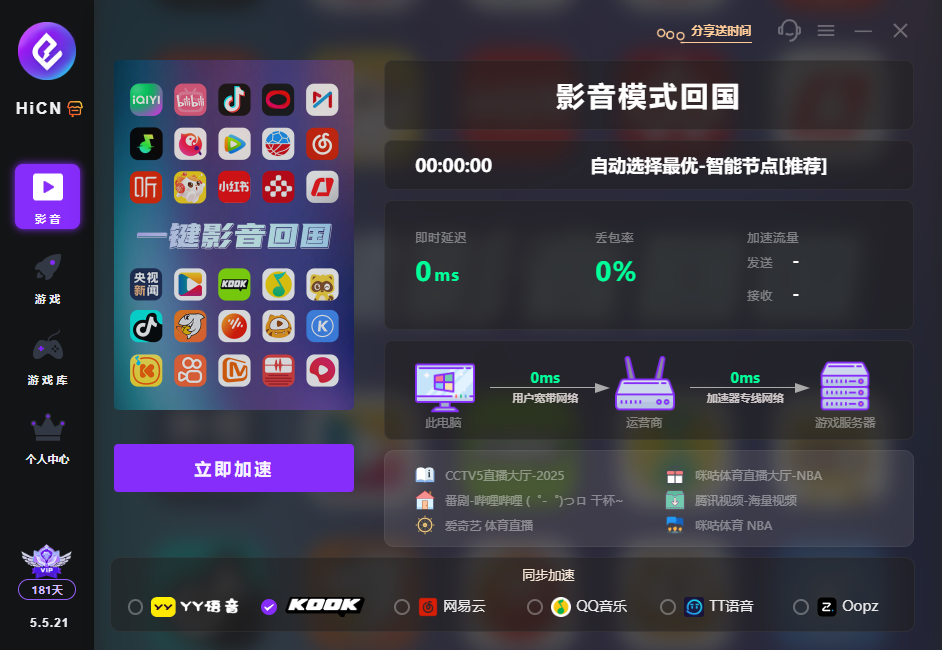 回国加速器的工作逻辑很简单:通过部署在中国大陆的优质服务器,为用户搭建专属网络通道,将海外用户的网络流量精准引导至国内服务器。这样既能成功绕过地域限制,让你在国外也能正常使用爱奇艺、韩剧 TV 等平台,还能优化网络传输路径,提升网速,避免观看直播、玩游戏时出现卡顿、加载缓慢等问题。