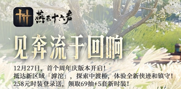 武侠大作《燕云十六声》周年庆典版本「饮马渡秋水」,定档 12 月 27 日正式上线!这款融合东方历史风韵与前沿游戏科技的作品,此次不仅带来海量全新内容,更准备了超丰厚福利回馈玩家,让全球侠士沉浸式玩转江湖~