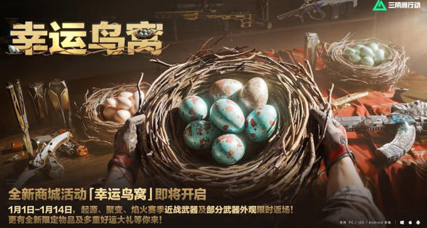 干员朋友们注意啦!《三角洲行动》全新商城活动「幸运鸟窝」1 月 1 日 - 1 月 14 日限时开启,这份活动指引赶紧收藏。